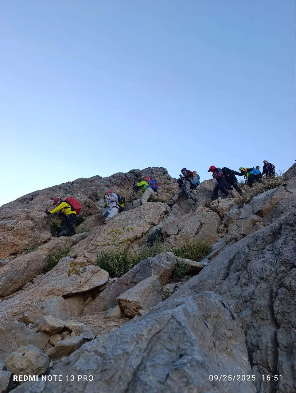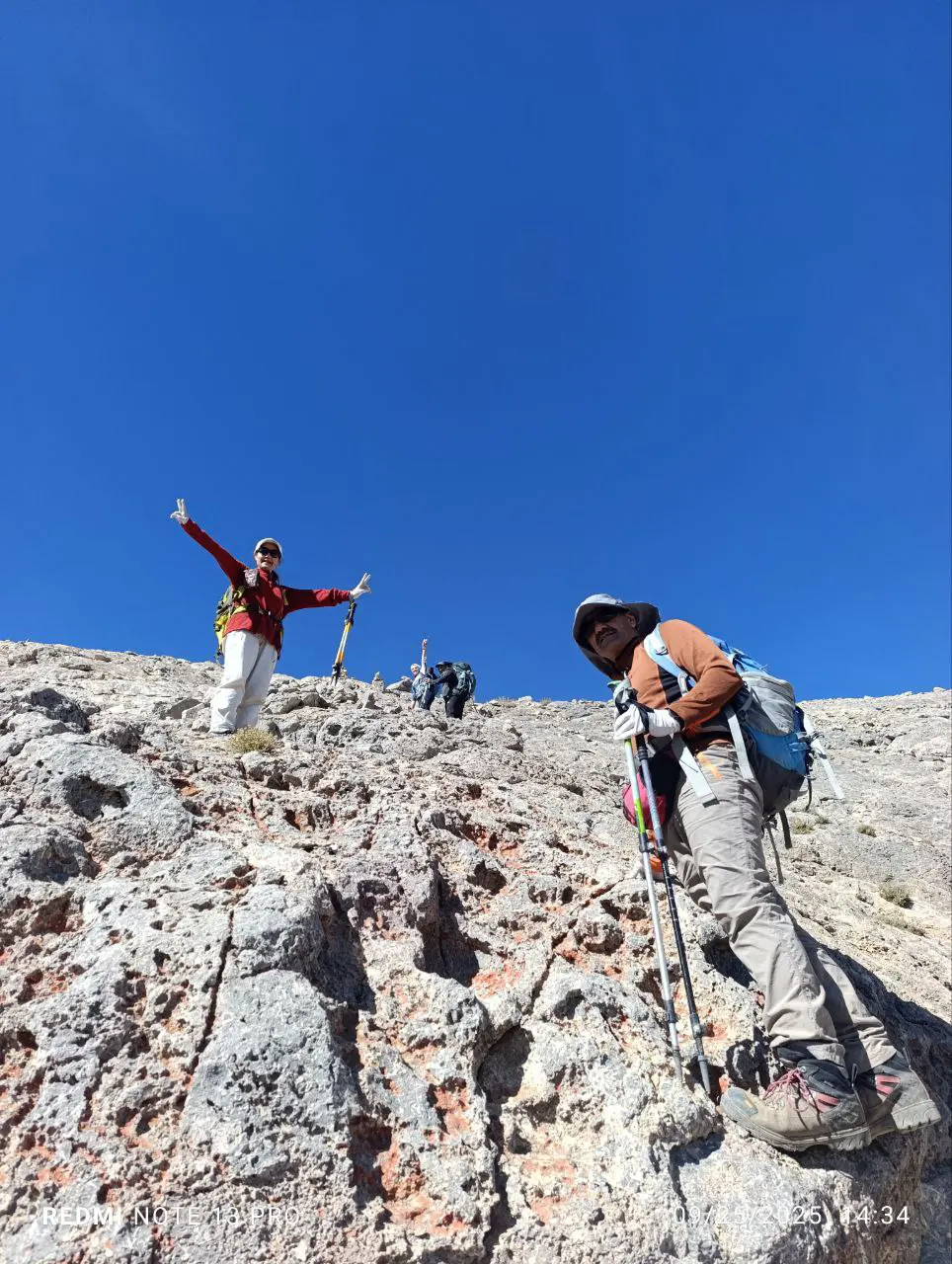 پس از خروج از تنگه، مسیر به سمت خطالرأس شاهانکوه ادامه یافت. شیب تند و وجود سنگریزههای لغزنده نیازمند دقت و تقسیمبندی انرژی بود. تیم با مدیریت زمان و استراحتهای کوتاه، حدود ساعت ——— بر فراز قله ایستاد.