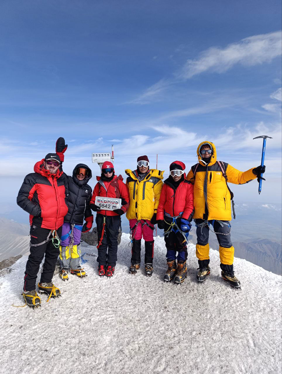 این کوه دارای یخ دائمی است که ۲۲ یخچال طبیعی را تغذیه میکند. این یخچالها باعث تشکیل رودخانههای باکسان، کوبان و مالکا شدهاند. در حالی که مسیر استاندارد صعود به البروس طولانی و سرد است، از نظر فنی دشوار نیست. بزرگترین چالش در صعود به این قله، شرایط متغیر آب و هوایی است.